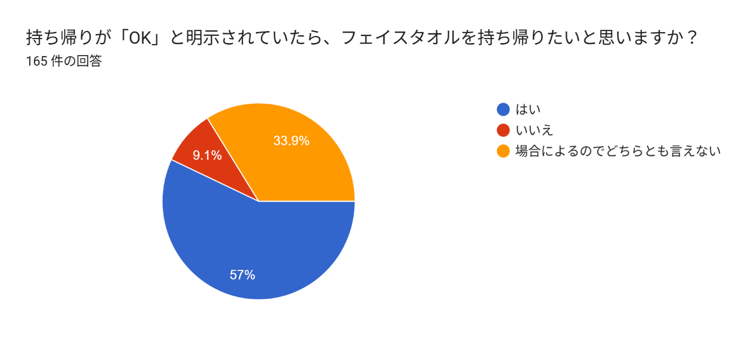 「お持ち帰りがOK」と分かっていれば、フェイスタオルを持ち帰りたいと思いますか?